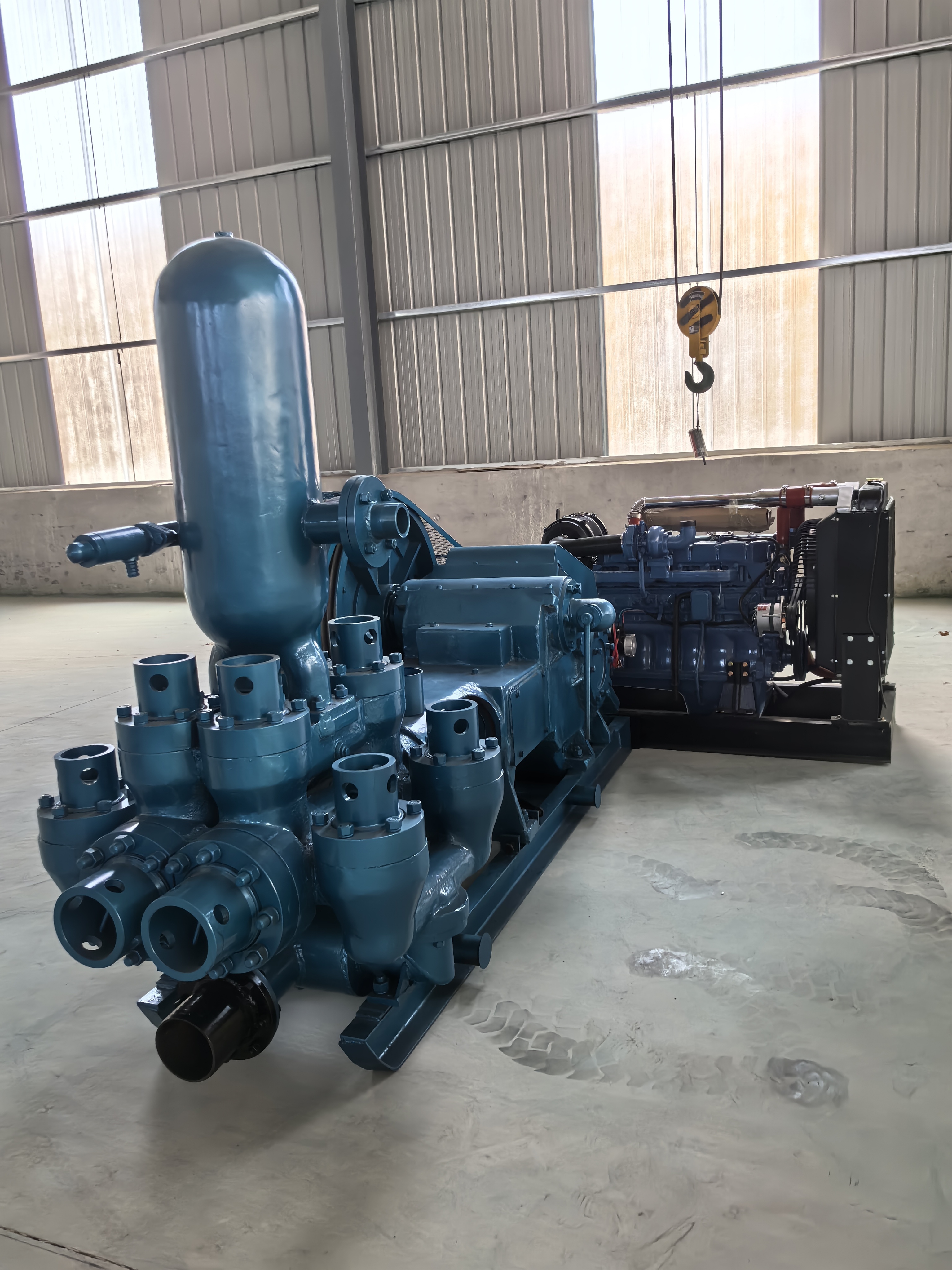BW850/5 Double-Cylinder Drilling Mud Pump is widely used to press flushing fluid into the hole during geological drilling and is used together with large-diameter drilling rigs with a depth of 200 to 600 meters، والتي يمكن أن تحسن من كفاءة منصة الحفر وجودة الحفر.